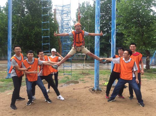 早上9點,在瓢潑大雨中戶外拓展活動正式拉開序幕。開班前,教練讓大家進行了“融冰”等一系列的活動,旨在突破參訓人員之間的隔閡,建立彼此間的信任,營造團結和諧的氛圍。根據教練的指導,全體人員分成兩組(龘驫組,啟望組)參加了空中單杠,信任背摔,群龍取水、急速60 秒、七巧板等活動。其中,信任背摔是訓練中最具典型意義的項目之一,使大家充分感受到了合作與溝通的重要性,這為以后的工作奠定了良好的基礎。