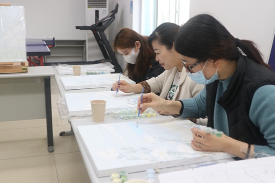 活動(dòng)中,廣大女職工興趣盎然地拿起畫筆肆意揮灑,沉浸在油畫創(chuàng)作中,大家互相交流,探討如何調(diào)色、構(gòu)圖、上色,相互欣賞品評(píng)各自作品,活動(dòng)現(xiàn)場(chǎng)氛圍溫馨歡快。